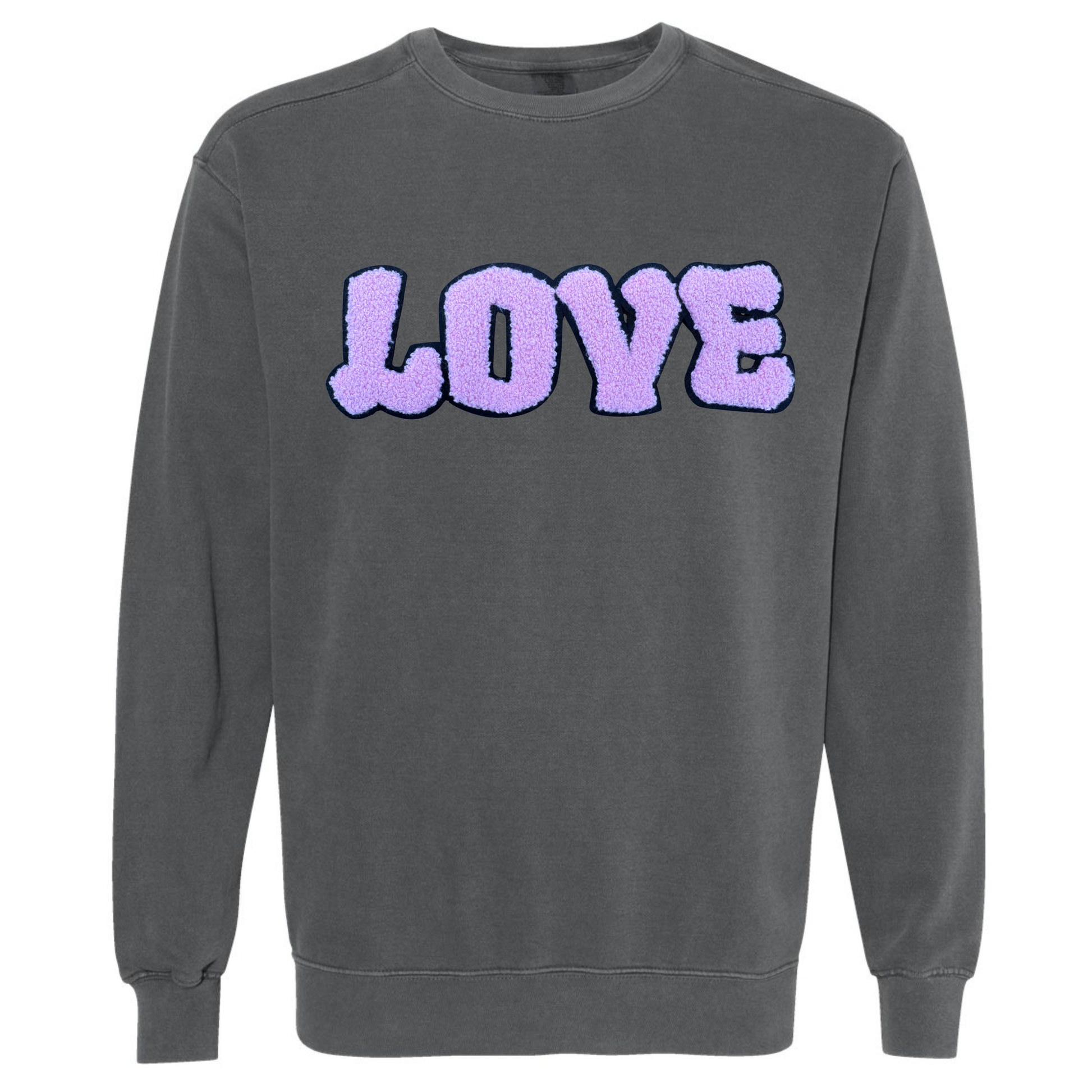 Comfort Color V-Day Sweatshirt with Chenille Patch (Pepper)