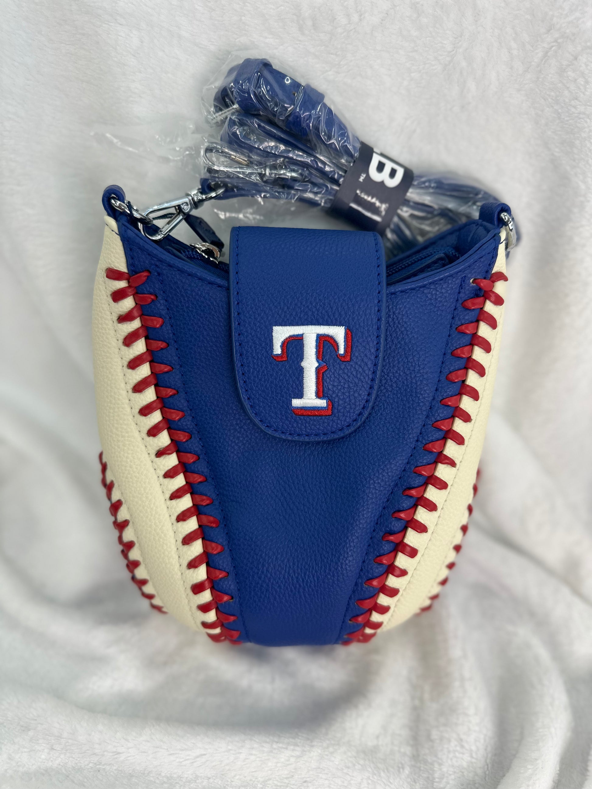 MLB Blue/Cream Leather TX Rangers Baseball Crossbody